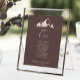 This clear mountain table number 1 seating chart is perfect for a rustic wedding. The design features an idyllic watercolor beige mountain.