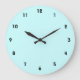 clear number wall clock with light blue background