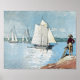 A fine art poster featuring the watercolor - Clear Sailing (1880) by the American artist Winslow Homer (1836-1910). This captivating scene invites you to witness the simplicity of childhood joy as three boys stand by the harbor, gazing in awe at sailboats gracefully navigating the waters.