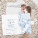 The matter paper is our sample of choice -- it's a reasonably priced, good quality, nice feeling paper stock. We were a little concerned the muted rustic blues might not reproduce all that well (usually by light colored samples), but they're just gorgeous! The white lettering is perfect in combination with the blue background, and the typography is all easy to read.