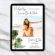 Watercolor palm tree design photo save the dates for your beach destination wedding in Clearwater Beach, Florida! Share your favorite engagement photo and your upcoming wedding details with family and friends with these save the dates.