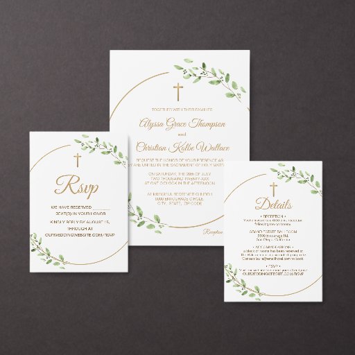 Catholic Church Gold Cross Greenery Wedding SuiteDesigned by Lorena Depante