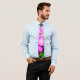I bought this tie for a cosplay of Haruhi Fujioka for Halloween and anime conventions. It feels very nice and silky. It's my first tie ever, and I'm a pretty big fan since I always wanted a tie. It was longer than I expected it to be (quite a plus), but the purple stripe was also thinner than I expected it to be (a slight bit of a downer, but I don't mind too much). I had never used Zazzle before, but I am very impressed with the shipping time. I was looking for places to get a tie like this so last minute since the ties like this on Amazon were incompatible with Prime. Thus, I ended up here. I paid for express shipping, expected delivery October 30-31, and it arrived in the morning on the 30th. Very impressed. I might just use Zazzle again. The print job was okay. The colors were perfect, but as you can see in the pictures, the stripe was a little off-center, and there was a kink in the stripe around where it transitions from the wide end to the thin end. It should work perfectly for my cosplay, but it was a little too carelessly print to be a very professional tie.