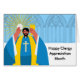Happy Clergy Appreciation Month paper greeting card with an illustration of a priest blessing the Eucharist in preparation for communion. Big bold shapes and colors contrast with the detailed window elements. Art, image, and verse copyright © Shoaff Ballanger Studios, 2025.