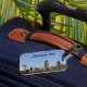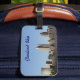 Great luggage tag with Cleveland skyline, under a clear blue sky. Sturdy large tag can be personalized and ordered with own address and phone number. Show pride in your city, make it very easy to identify lost luggage and have it returned to you !