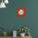 A bold red background features the phrase "clever girl" at the center, enclosed by a ring of white dots surrounding a larger white oval. The playful and simplistic design emphasizes the central message.