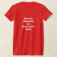 My overall review is that the T-shirt is nice, it fits true to size however the font is significantly smaller than advertised and you can't read it. The printing is unreadable and there is a strain to read it. It does not look like the advertised product. Maybe the shirt color is darker or a larger more visible font should have been used. Photos with and without flash and font is barely legible.