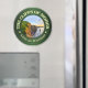Well Designed High Quality Magnet. Colors are Vibrant Clear Excellent good size Diameter Circumference Fonts Red Folio Bold Clover Green Outline Puffy White Interior Image