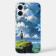 Dynamic anime phone case with a brave boy on a cliff under dramatic clouds. Optional text layer allows personalization or removal.