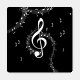 G Clef among white notes of music on black. The black background makes the bright white notes pop.