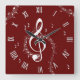 Climactic G Clef Music Red Roman Numerals Square Wall Clock