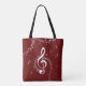 G Clef among notes of music on a deep red. The dark red background makes the bright white notes pop. White and maroon music design,