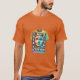 The t-shirt design features bold, eye-catching text that reads "Climate Action Now" in a modern, sleek font. The words are surrounded by various symbols representing environmental sustainability, such as trees, leaves, and recycling arrows. The overall design conveys a sense of urgency and calls for immediate action to combat climate change.