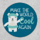 Raise awareness about climate change and global warming with this patch featuring a lovely cartoon white polar bear with a light blue swim ring and cap. The caption reads "make the world cool again".
