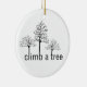 Climb a tree design with 3 bare trees growing from "climb a tree" text