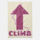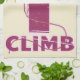 A typography design which has the word climb and an arrow painting up. Running rope weaves between the letters of the word climb. For anyone who loves sport or trad climbing.