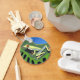 This colourful keychain features my simple design of a green tree frog on a jungle leaf against bright blue sky. Perfect as a colourful accessory or a lovely gift for a frog lover.