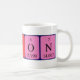 Clinton spelled out as Cl In T O N (Chlorine Indium Tritium Oxygen Nitrogen) on a mug for the scientist in you.