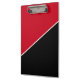 This clipboard is shown in a modern color block design in colors of black and red.