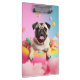 Stop the boring everyday office life - this terminal board is a real statement! The playful design shows a cheerful mops in the Donut swim tires, floating on sugar cotton clouds, surrounded by colorful lollis and a heavenly color gradient in pink, turquoise and pastel. Ideal for school, study, office, kitchen or as a gift for lovers of mops*in. Perfect for organizing to-do lists, recipes, homework or creative projects. The sturdy clipboard is light, durable and a real eye-catcher on every desk due to its sweet design! 🐶 🍭