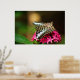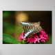 A photograph of a Clipper Butterfly on pink star shaped flowers in a garden.