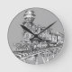 Black & White clock face with Pen & Ink drawing by Don Kirk of an 1880 Baldwin steam engine. Fantastic detail in the line work.