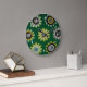 Daisy pattern afghan. Background is green with flowers in yellows, browns, tan, grey, and greens. Numerals are white..