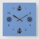 Anchors at 12 and 6 positions, Helms at 3 and 9. Remainder of clock positions are black numerals. Background color of medium blue may be customized.