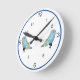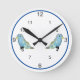 Blue birds sitting atop numbers 8 and 4, with their beaks pointing at 9 and 3. Dark blue circle marks outer edge of clock face.
