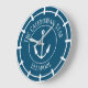 Wall clock for a ship or a boat, with the name of the ship plus its port of origin, or base harbour. Design includes an anchor motif.