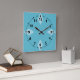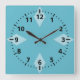 Four diamond shapes sit at the 12, 3, 6 and 9 positions, outlining those numerals. Clock face shows all numerals and minute hash marks in black. Diamonds are automatically a lighter shade than the chosen background (defaults to medium blue).