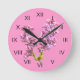 Purple and white lilac blooms on a short stem, decorates the center of the clock face. Roman numerals mark the hours. Customize/Edit background color to your choice of color.