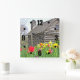 CLOCK/ "OLD LOG CABIN AND TULIPS" SQUARE WALL CLOCK