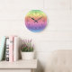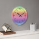 Rainbow colors travel down the clock horizontally, from green through blue. Minute segments are depicted in in ring outside of the numerals. ***Part of coordinated set - BKM1x.