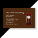 Retail clock shop and clock repair shop business cards template with image of a pendulum clock in the background and simple layout designed to be customized online.