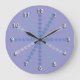 Snowflakes divide the clock face into twelve sections - the ends of each line is topped with a white numeral. There are six different shades of blue for the lines. The background is a lavender-blue color (customize the background color if you desire).
