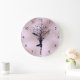 A beautiful, modern and spiritual clock design featuring in its center the black silhouette of a woman standing in a yoga pose. Her arms are stretched above her head and merge with the silhouette of a small tree. The background is in shades of light pastel pink. Perfect gift for yourself or your loved ones.