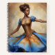 A steampunk ballerina with a copper and blue costume that combines elegance and technological innovation.