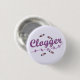 This pretty design for clog dancers features the word "Clogger" in purple cursive type with a row of five tiny dancing stick figures below. It also has four shoe prints with taps on them. It's a great way to show off your love of clogging. Background color is customizable. Also available in blue.