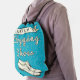 Carry your clogging shoes to practice, workshops and performances in style with this pretty, personalized drawstring backpack. Done in shades of blue-green and cream, the design has light-gray music note pattern behind a pair of clogging dancer shoes and the words "[Your Name's] Clogging Shoes." The words "clogging shoes" are made to look a little like shoelaces. Easily add your name to the cream-colored banner. If you want to change the font or resize the text to better fit your name, "Customize It." This is the perfect bag for the clog dancing fan.
