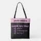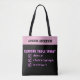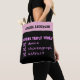 This funny tote design for clog dancers says "Clogging Triple Threat" in pink text and then lists the words "dance, choreograph, instruct" with check marks beside them. It's a great way to show off your dancing skills if you are, indeed, a triple threat! The background is black. Easily add your name or your instructor's name to the template field.