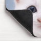 Close up image of a predominately white faced mouse pad
