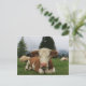 Close up of a brown and white cow laying down postcard