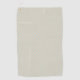 Close-up of a patterned towel with a small geometric diamond motif in teal and orange on a white background. A metal ring is attached at the top corner.