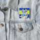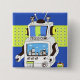 Close-up of a robot pinback button