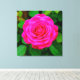 A vibrant pink rose captured in full bloom, surrounded by lush green leaves. The striking colors and intricate petal details evoke feelings of beauty, elegance, and natural vibrance.
