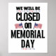 Memorial Day Poster, Closed on Memorial Day, We Will Be Closed on Memorial Day Poster for office, business, personal use.
