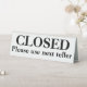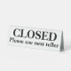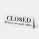 Closed please use next teller counter tabletop table tent