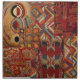 an array of earthy patterns on cloth dinner napkins... a set of 4, 20x 20 inches and beautiful!!! a collage of african and australian indigenous designs. influenced by tribal textiles. red, orange, indigo and yellow. black and ivory.