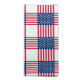 This cloth napkin is shown in a patriotic stars and stripes print design. Single